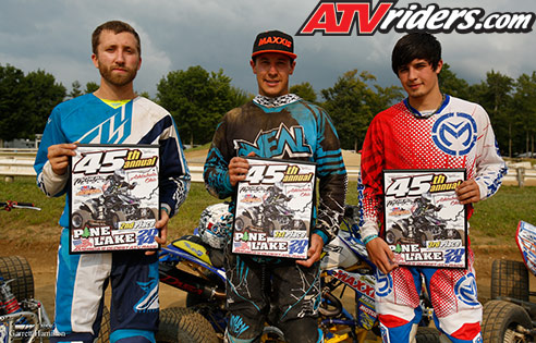 Ashtabula, OH (7/24/2014) – The ATV Extreme Dirt Track National Championship Series headed, for their fourth round of racing, to the Pine Lake Track and Trails facility nestled in the small town of Jefferson, located in Northern Ohio. The weather seems to be one step ahead of us however, whenever we come to Pine Lake Mother Nature has the weekend planned out for us before we even get their. Friday’s practice day was beautiful but as soon as the lights went out, the rain moved into town. Saturday was doused in rain but that didn’t stop the pit bike wheelie contest or the annual hare scramble races from happening. This in turn meant the laps were to be cut for Sunday’s EDT races to try and fit everything into one day, which went off without a hitch.