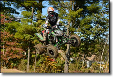 Epping, NH (10/3/2013) - The New England ATV MX series headed back to the MX101 complex in Epping, NH for the second to last round of racing action. The racers were greeted with very cool, and moist track conditions which proved to be the perfect mix once the racing action began to heat up! Steam rolled off the sandy track in the early part of the morning, which made for a picturesque scene as the racers tore off the starting gate.
