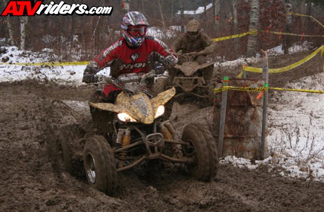 on his Banshee to make an all Yamaha 1-2-3 start. Mark