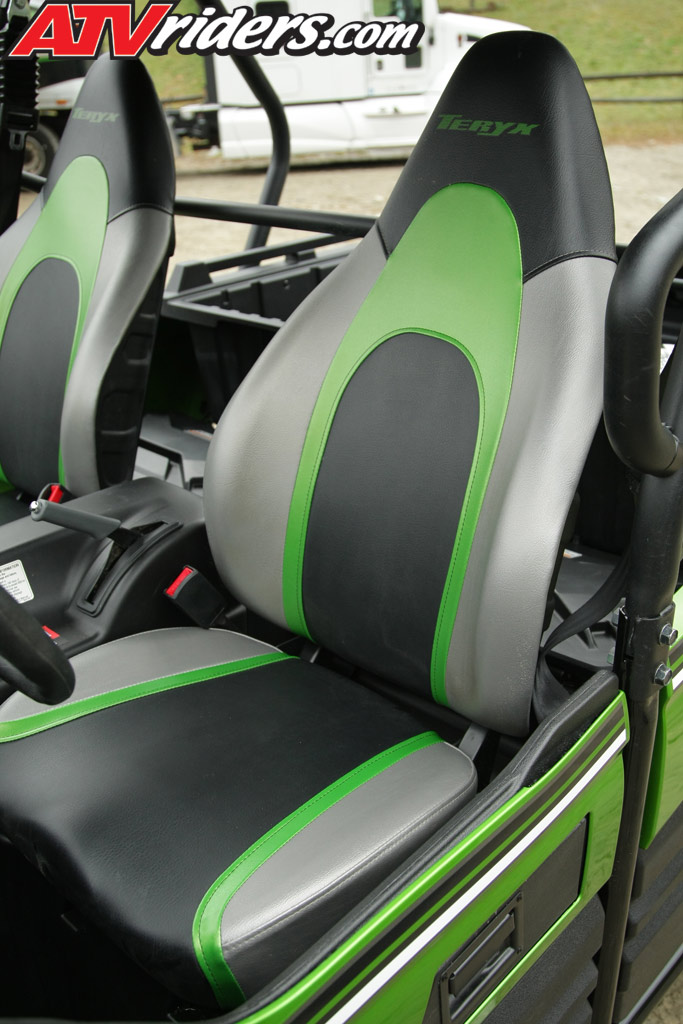 Kawasaki used an all-new form-fitting high-back bucket seat design that is much more comfortable and has a quick detach seat bases for easy maintenance. The Kawasaki Teryx 800 LE model comes standard with three-tone color matched seats that extends the Teryx LE model’s customized look. The seats can be adjusted forward or backward by loosening four bolts that are located under the seat base. Anti-cinch seat belts were also applied to the new Kawasaki Teryx 800 for a comfortable ride.